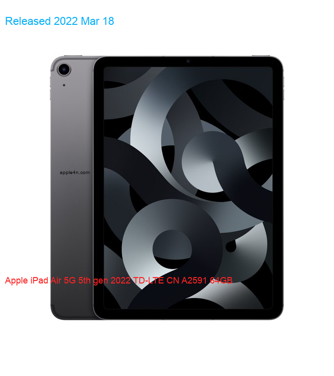 | Model | iPad Air 5G 5th gen 2022 TD-LTE CN A2591 64GB |