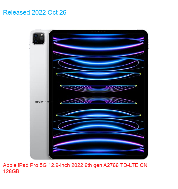| Model | iPad Pro 5G 12.9-inch 2022 6th gen A2766 TD-LTE CN 128GB |