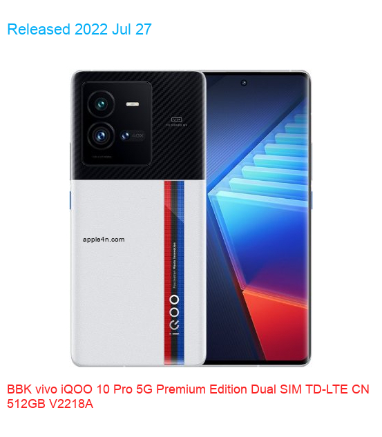Model vivo iQOO 10 Pro 5G Premium Edition Dual SIM TD-LTE CN 512GB V2218A