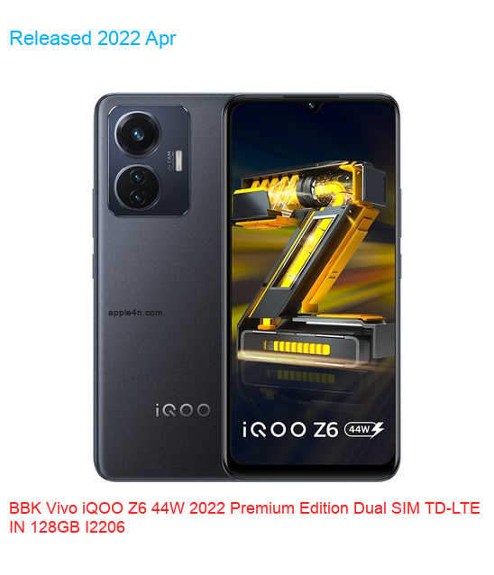 | Model | Vivo iQOO Z6 44W 2022 Premium Edition Dual SIM TD-LTE IN 128GB I2206 |