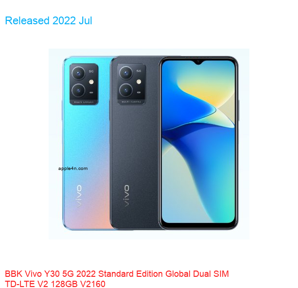 | Model | Vivo Y30 5G 2022 Standard Edition Global Dual SIM TD-LTE V2 128GB V2160 |