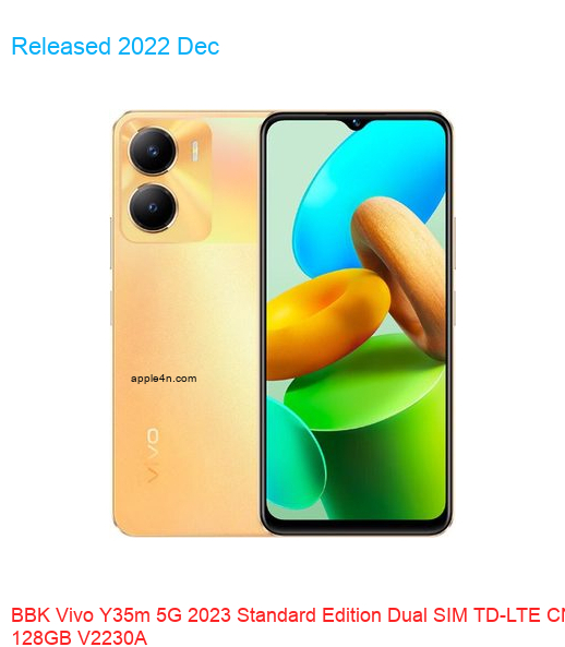 | Model | Vivo Y35m 5G 2023 Standard Edition Dual SIM TD-LTE CN 128GB V2230A |