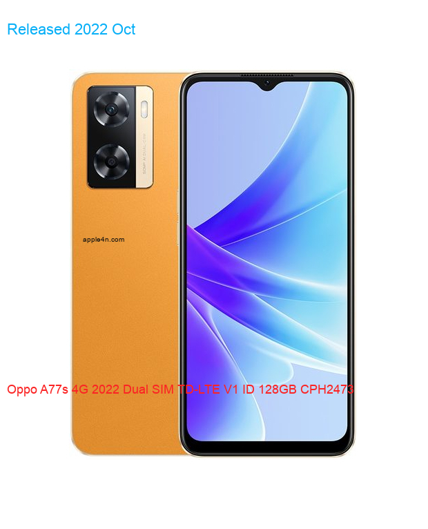 Specifications data description of this 📱Oppo A77s 4G 2022 Dual SIM TD-LTE V1 ID 128GB CPH2473📱