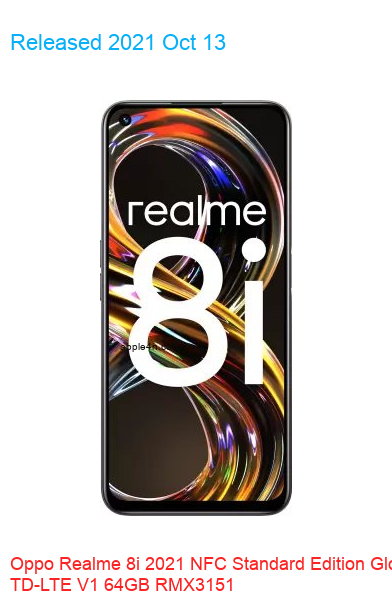 | Model | Realme 8i 2021 NFC Standard Edition Global Dual SIM TD-LTE V1 64GB RMX3151 |