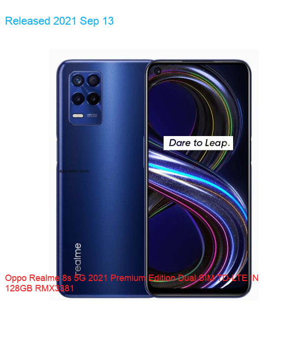 | Model | Realme 8s 5G 2021 Premium Edition Dual SIM TD-LTE IN 128GB RMX3381 |
