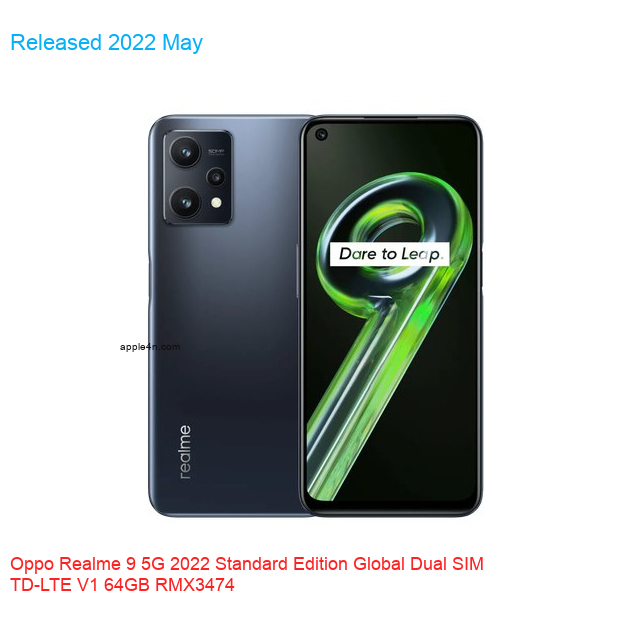 Specifications data description of this 📱Oppo Realme 9 5G 2022 Standard Edition Global Dual SIM TD-LTE V1 64GB RMX3474📱