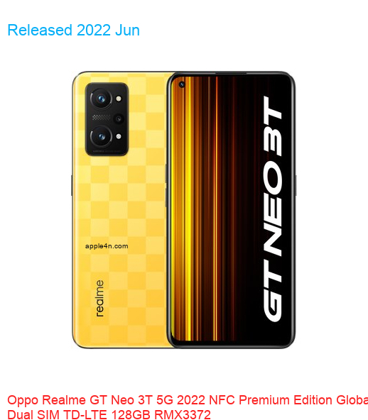 Specifications data description of this 📱Oppo Realme GT Neo 3T 5G 2022 NFC Premium Edition Global Dual SIM TD-LTE 128GB RMX3372📱