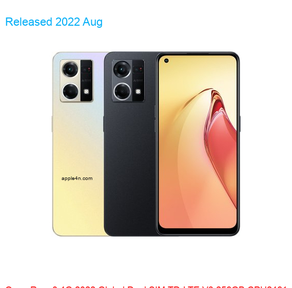 | Model | Reno8 4G 2022 Global Dual SIM TD-LTE V3 256GB CPH2461 |