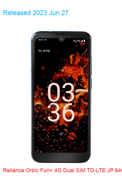Specifications data description of this 📱Reliance Orbic Fun+ 4G Dual SIM TD-LTE JP 64GB RC609LP📱