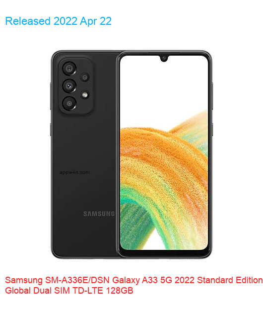 | Model | SM-A336E/DSN Galaxy A33 5G 2022 Standard Edition Global Dual SIM TD-LTE 128GB |