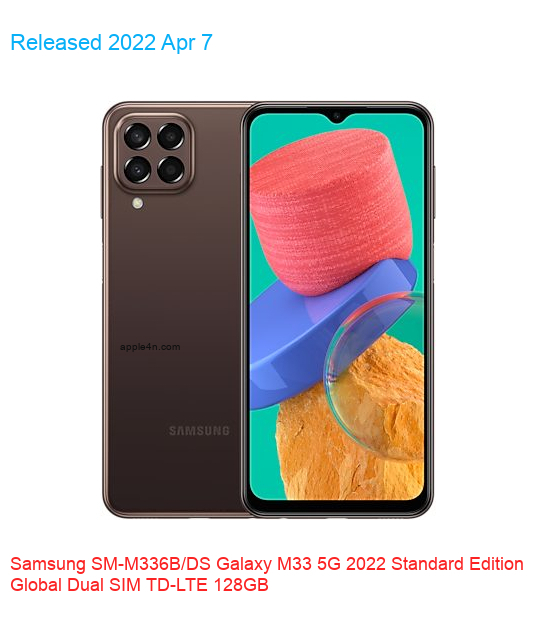 | Model | SM-M336B/DS Galaxy M33 5G 2022 Standard Edition Global Dual SIM TD-LTE 128GB |