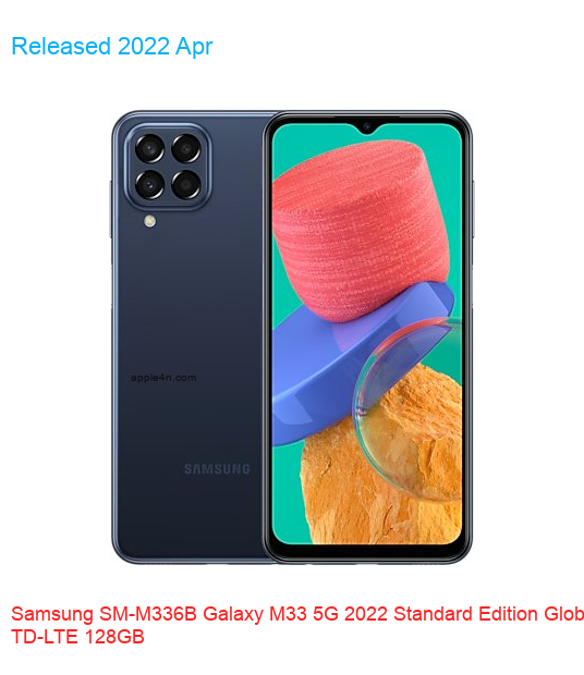 | Model | SM-M336B Galaxy M33 5G 2022 Standard Edition Global TD-LTE 128GB |
