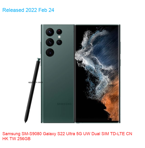 SM-S9080 Galaxy S22 Ultra 5G UW Dual SIM TD-LTE CN HK TW 256GB |