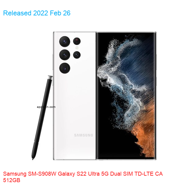 | Model | SM-S908W Galaxy S22 Ultra 5G Dual SIM TD-LTE CA 512GB |