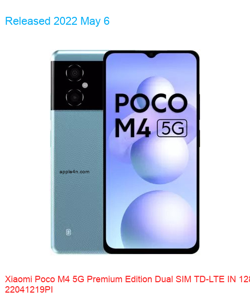 | Model | Poco M4 5G Premium Edition Dual SIM TD-LTE IN 128GB 22041219PI |