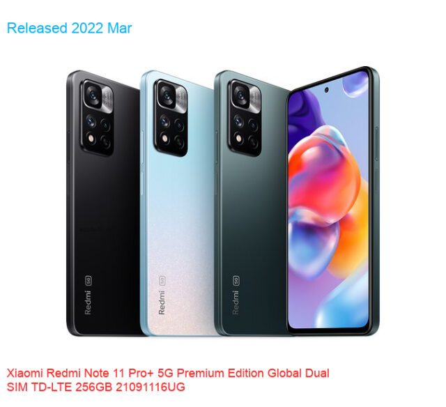 | Model | Redmi Note 11 Pro+ 5G Premium Edition Global Dual SIM TD-LTE 256GB 21091116UG |
